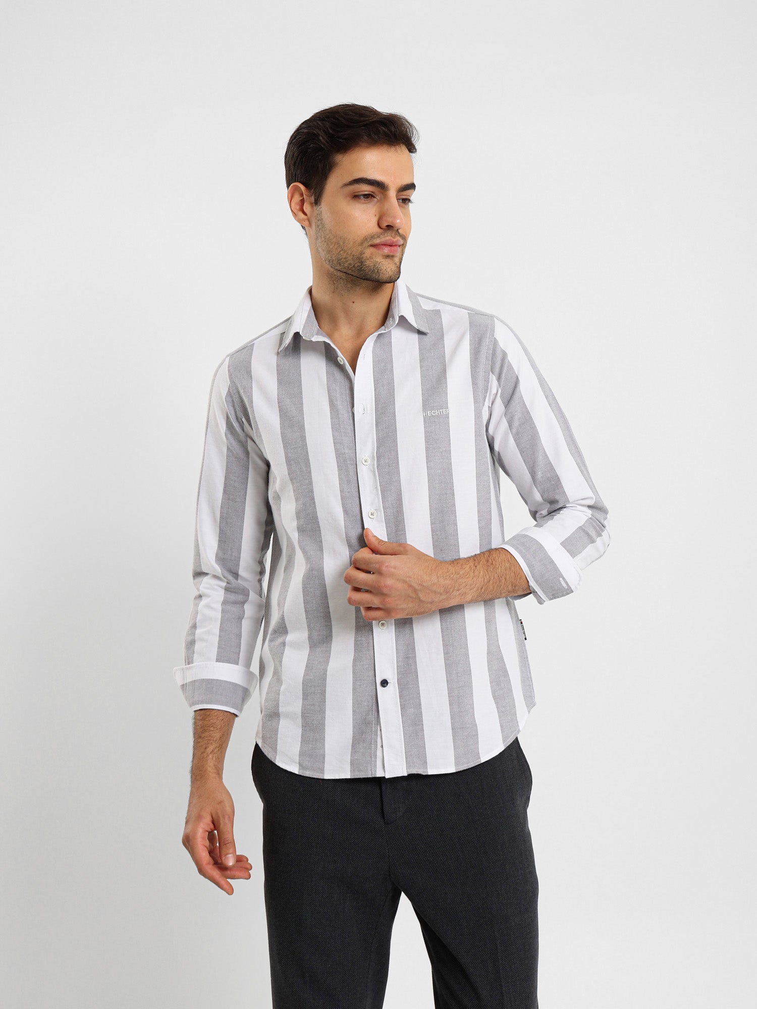 Basic Oxford Wide Striped Long Sleeve Shirt